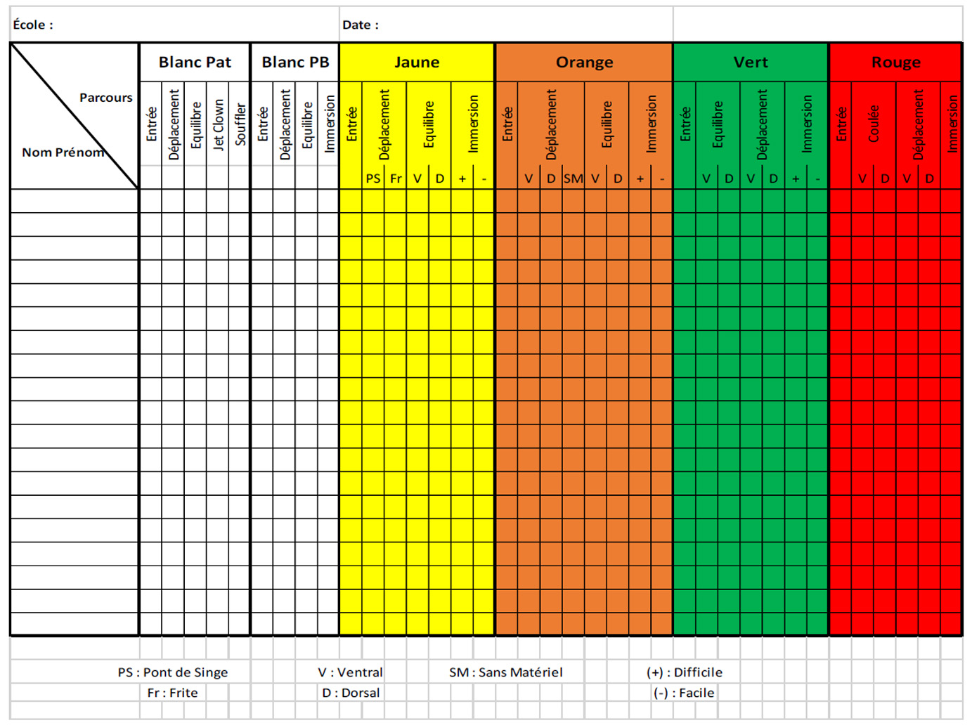 Équilibre Respiration Propulsion Immersion Déplacement Entrée dans l’eau